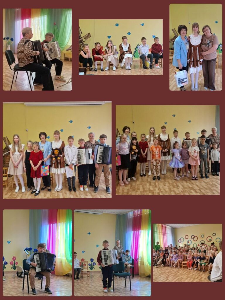 Юные слушатели познакомились с удивительным миром музыки и её выразительными возможностями. С аккордеоном детей познакомили ученики Артём Логинов (1 класс) и Марк Ведерников (2 класс), продемонстрировав звучание и характер этого инструмента.